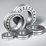 調心滾子軸承在有二條滾道的內圈和滾道為球面的外圈之間,裝配有鼓形滾子的軸承。 外圈滾道面的曲率中心與軸承中心一致,所以具有與自動調心球軸承同樣的調心功能。在軸、外殼出現(xiàn)撓曲時,可以自動調整,不增加軸承負擔。調心滾子軸承可以 承受徑向負荷及二個方向的軸向負荷。徑向負荷能力大,適用于有重負荷、沖擊負荷的情況。內圈內徑是錐孔的軸承,可直接安裝。或使用緊定套、拆卸筒安裝在圓 柱軸上。保持架使用鋼板沖壓保持架、聚酰胺成形保持架及銅合金車制保持架。 調心滾子軸承可承受較大的徑向載荷,同時也能承受一定的軸向載荷。該類軸承外圈滾道是球面形,故具有調心性能,當軸受力彎曲或傾斜而使內圈中心線與外圈中心線相對傾斜不超過1°~2.5°時,軸承仍能工作。調心滾子軸承內孔有圓柱形和圓錐形兩種。圓錐形內孔的錐度為1:1 2或1:30。為了加強軸承的潤滑性能,在軸承外圈上加工環(huán)形油槽和三個均布的油孔。調心滾子軸承適用于承受重載荷與沖擊載荷,廣泛應用于冶金、軋機、礦山、石油、造紙、水泥、榨糖等行業(yè)。